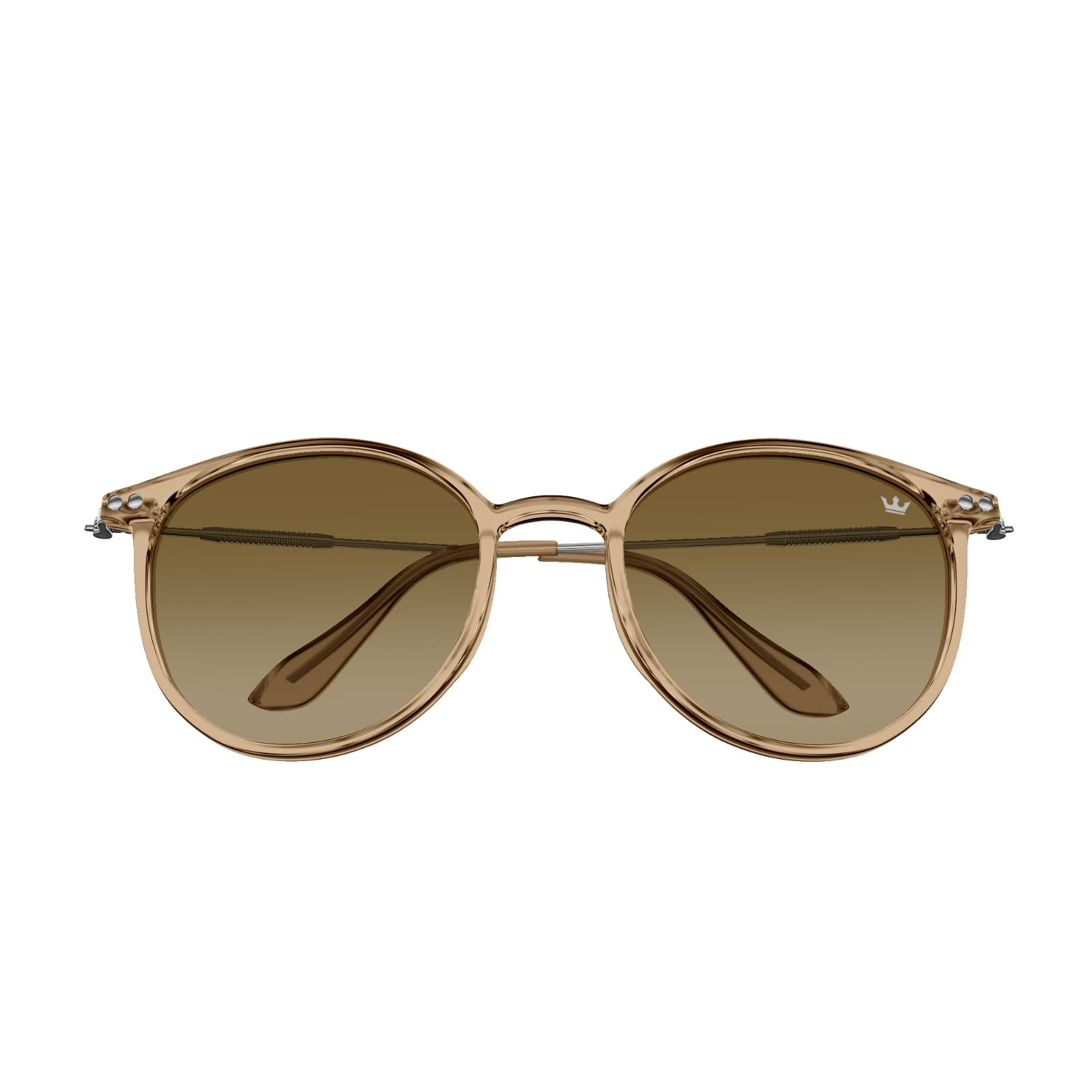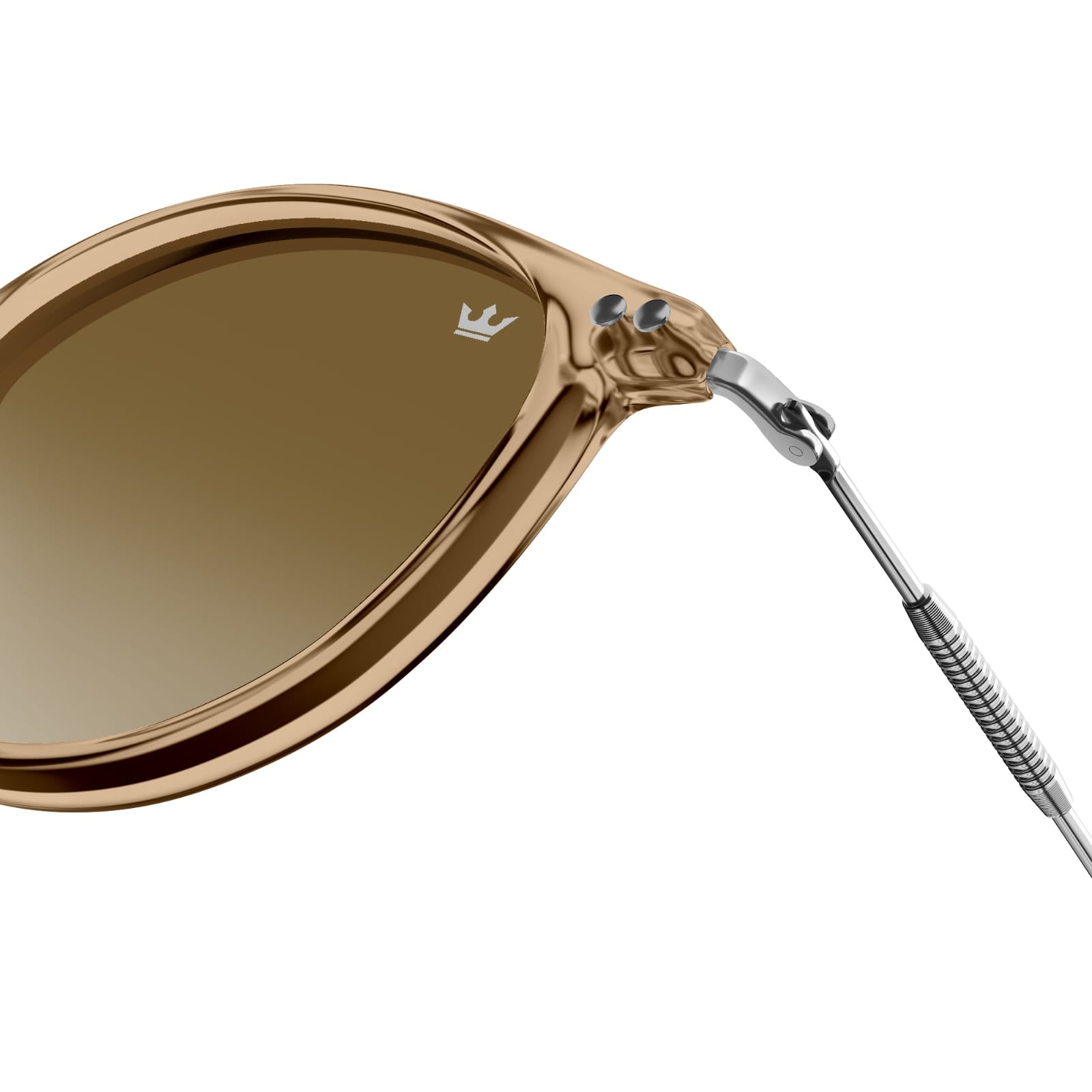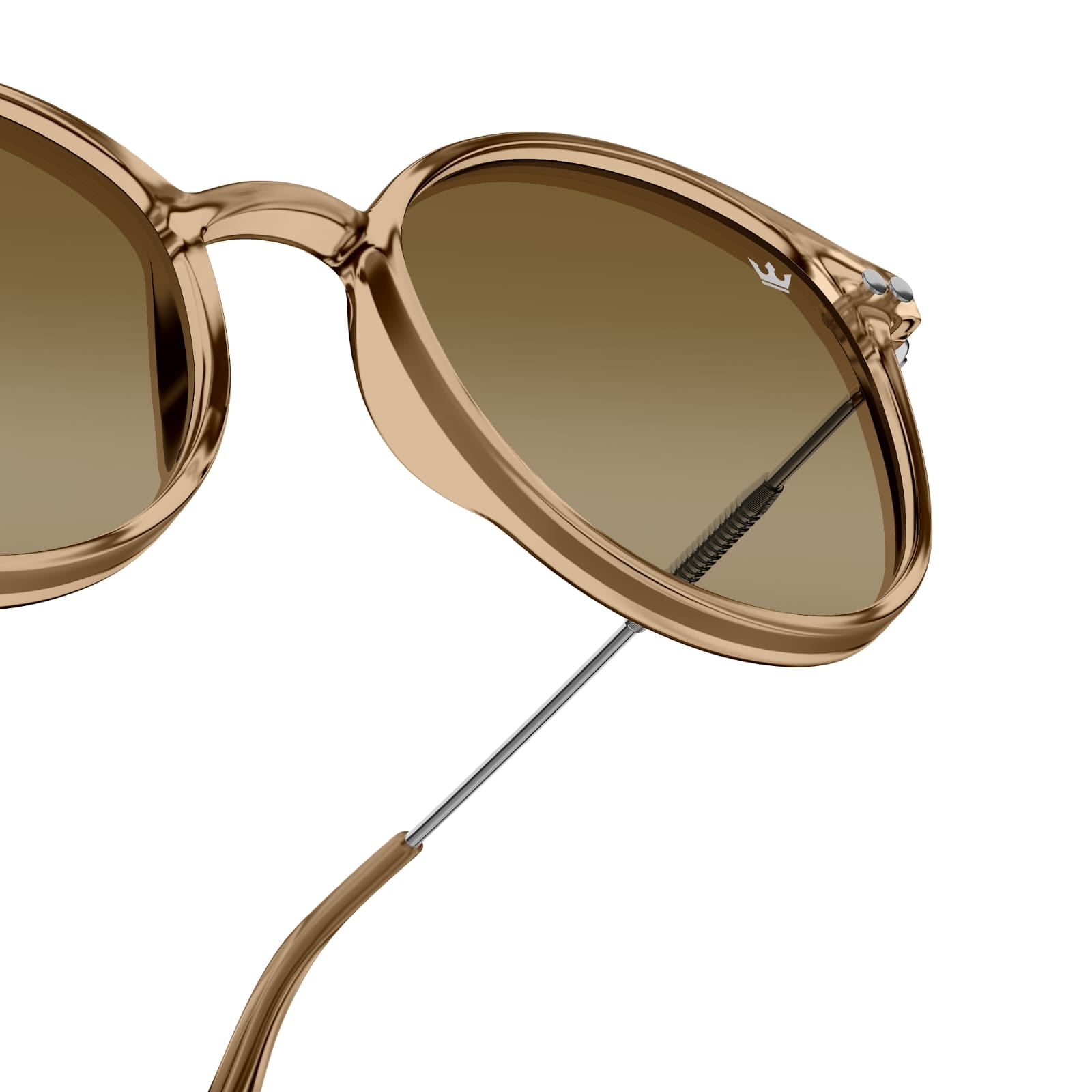 Hybrid Crystal Frame: A fusion of translucent brown and stainless steel temples for durability with featherlight comfort.